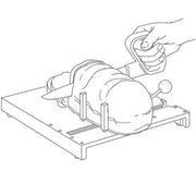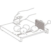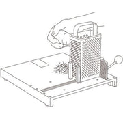 The Fixed preparation board stands firmly on its four friction feet or the enclosed suction feet. The jaws hold a bowl, grater or piece of food in place. There is also a small plate with spikes to hold smaller pieces of food. This can be removed and also placed with the spikes pointing downwards to obtain a flat surface.