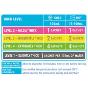 Precise Thick-N INSTANT is available in sachets, making thickening fluids easier and more convenient for people with dysphagia. All IDDSI Levels are accommodated in one box – just add the required number of sachets to the appropriate amount of liquid to thicken beverages to accurate viscosities.