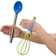 EazyHold 蓝色双包装,5 1/4 英寸柔软硅胶通用腕带,适用于儿童和成人,可固定多种物品。腕带可调节,帮助手指活动受限或肢体残缺的人士抓握玩具和工具。它能让您牢牢握住梳子等梳妆工具,也能轻松固定锅铲、勺子等厨房用具。