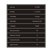 该时钟具有根据一天中的时间自动调节显示屏亮度的功能。亮度选项包括高、中、低和自动。在自动模式下,显示屏在上午 7 点后白天模式下亮度会升高(50cd/㎡),在晚上 7 点后夜间模式下亮度会自动降低(10cd/㎡)。